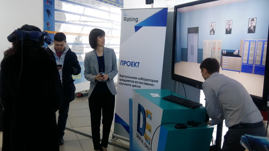 Данные проекты можно было «примерить» на себя. Так IT-компания Рейтинг погрузила нас в лабораторный практикум по химии, где с помощью виртуального пространство выполнили химический опыт. Фирма «Казинтерсервис» представила учебное оборудование с программным обеспечением Google в помощь преподавателям. ТОО «Силумин Восток» погрузила в виртуальную прогулку по офису и многое другое.