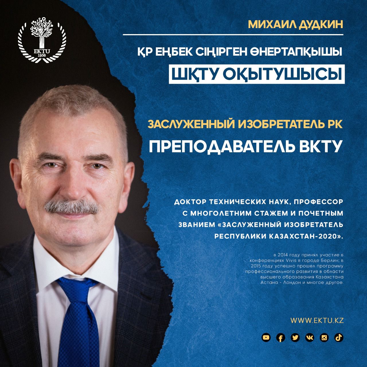 2020 жылы Михаил Васильевич аса маңызды және кеңінен қолданылатын өнертабыстардың авторлары болып табылатын Қазақстан азаматтары арасында «Қазақстан Республикасының еңбек сіңірген өнертапқышы» атағын алу байқауына қатысты. Байқау материалдарды комиссия үміткердің өнертапқыштық қызметке қосқан үлесі маңыздылығының көптеген критерийлерін ескере отырып қарады. Одан кейін Михаил Васильевич Дудкинге «Қазақстан Республикасының еңбек сіңірген өнертапқышы-2020» атағы берілді.