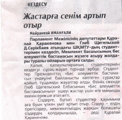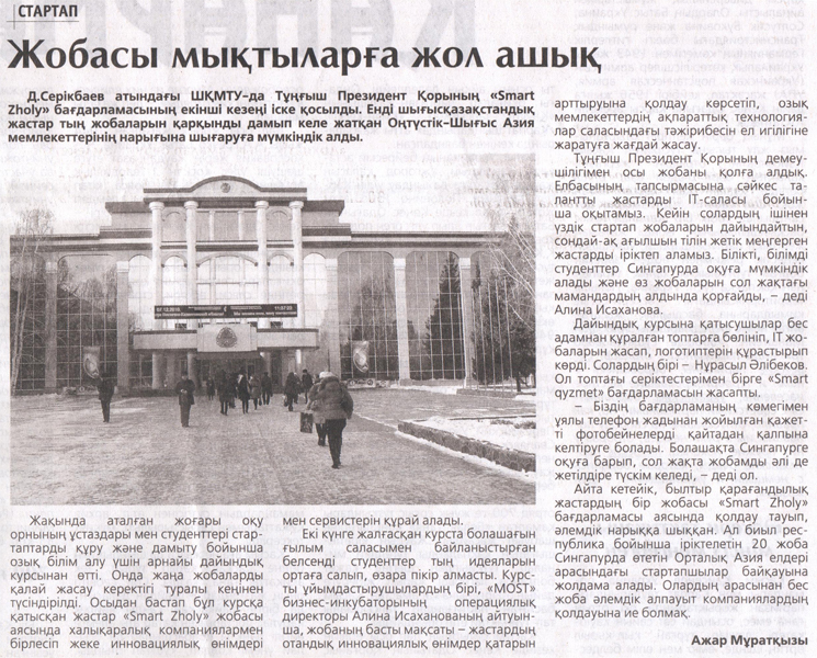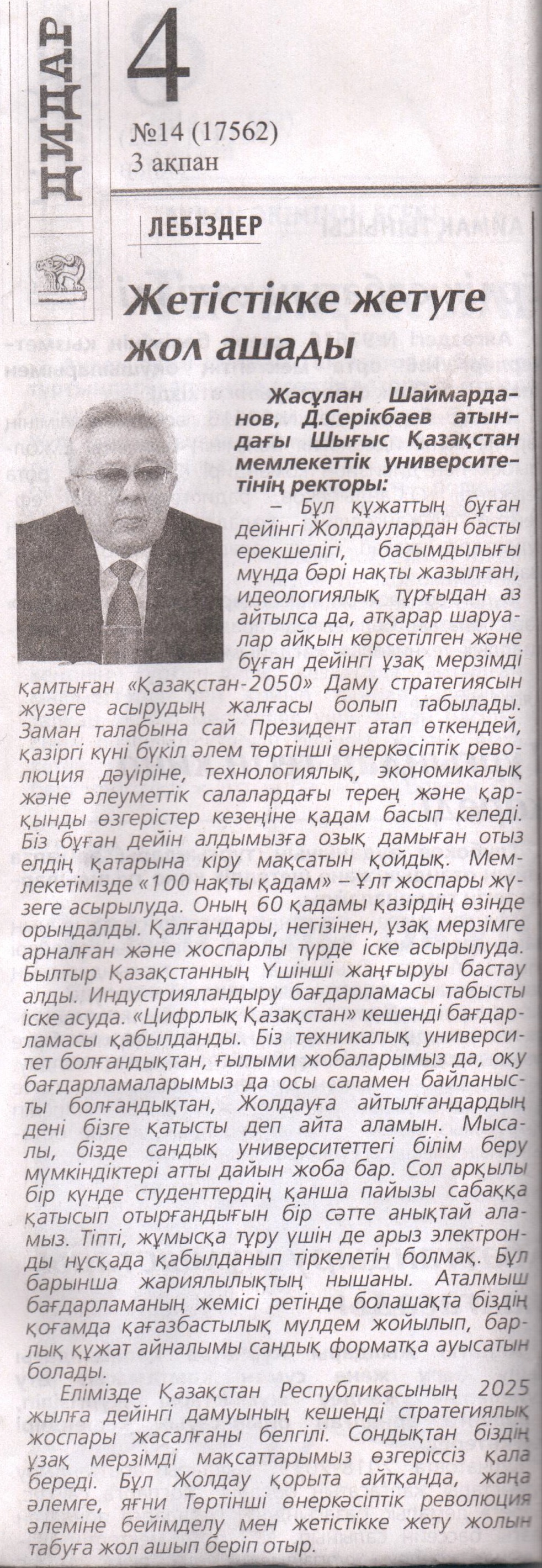 Жетістікке жетуге жол ашады Газета Дидар, от 3.02.2018 г. |