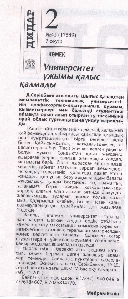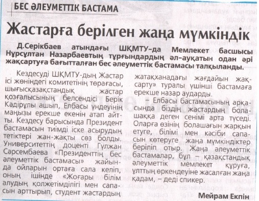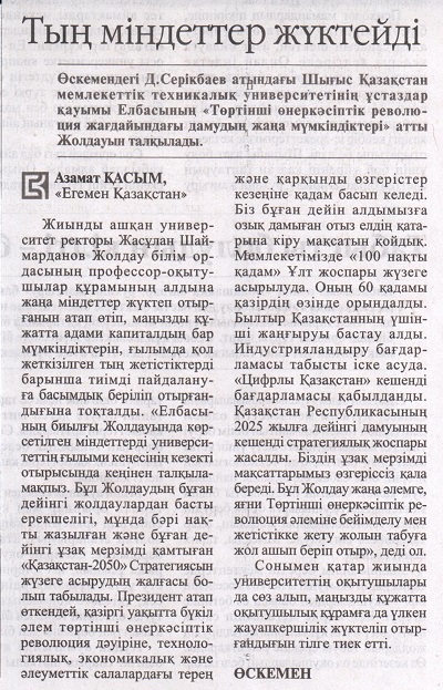 В ВКГТУ имени Серикбаева откликнулись на Послание Президента Республики Казахстан