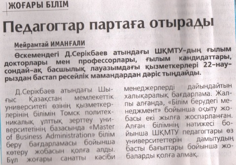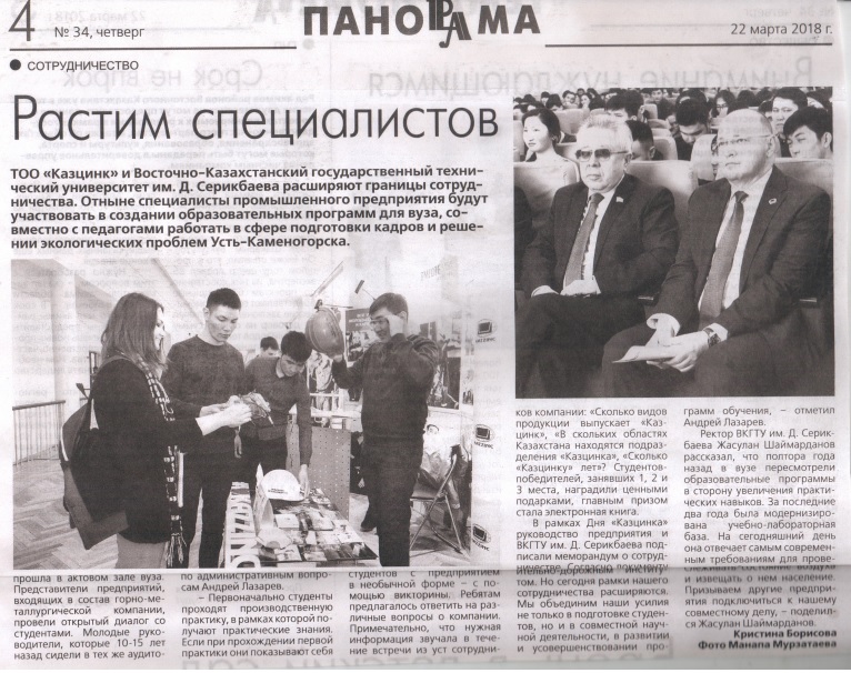 Д.Серікбаев атындағы ШҚМТУ Қазақстан тарихында тұңғыш рет атом технологиясына мамандар даярлауды қолға алды. Университет пен ҮМЗ арасындағы келісімшартқа сәйкес мұнда қазір тоғыз магистрант білім алуда