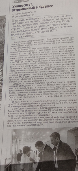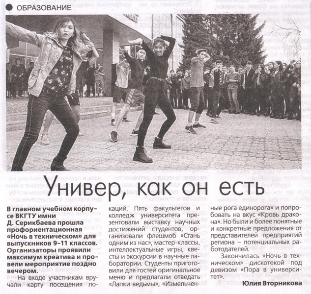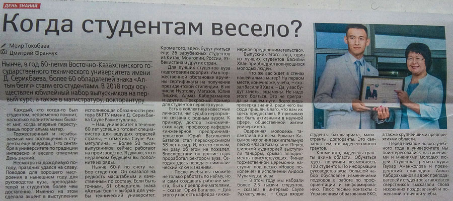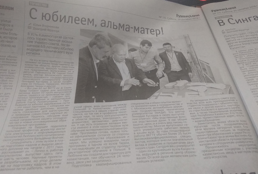 "Юбилей вуза, день второй" …. Газета Рудный Алтай, №115 от 29.09.18 г. |