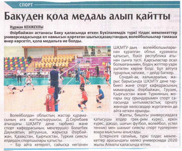 Воспитанники кафедры физического воспитания и спорта ВКГТУ им. Д. Серикбаева под руководством национального судьи высшей категории по волейболу Болатбека Даумова за прошлый учебный год показали высокие спортивные результаты.