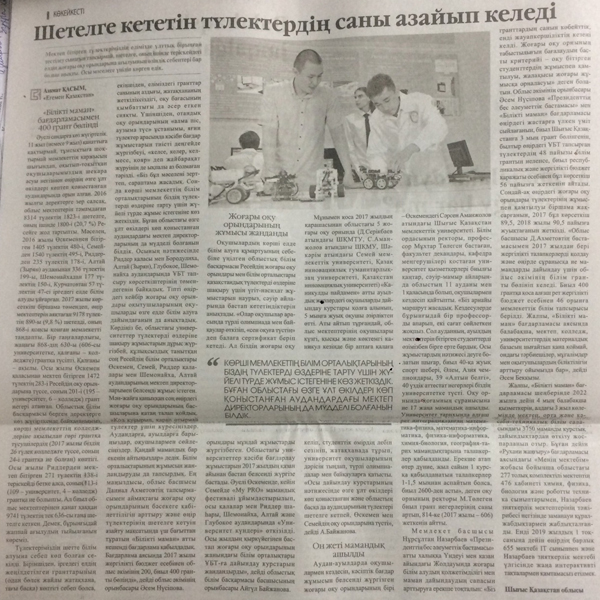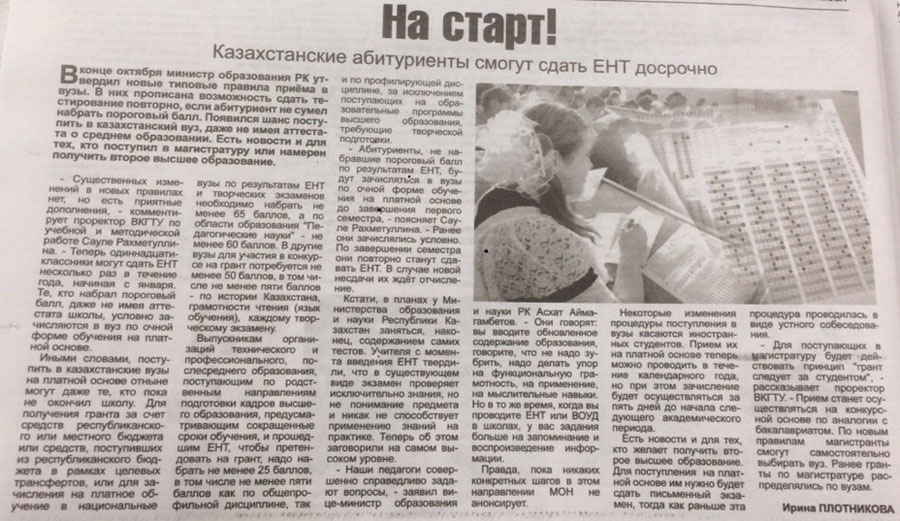 На старт! Казахстанские абитуриенты смогут сдать ЕНТ досрочно. Газета «Мой город» от 22 ноября 2018 г. |