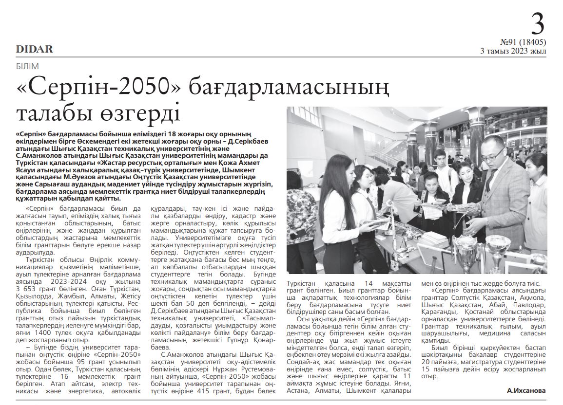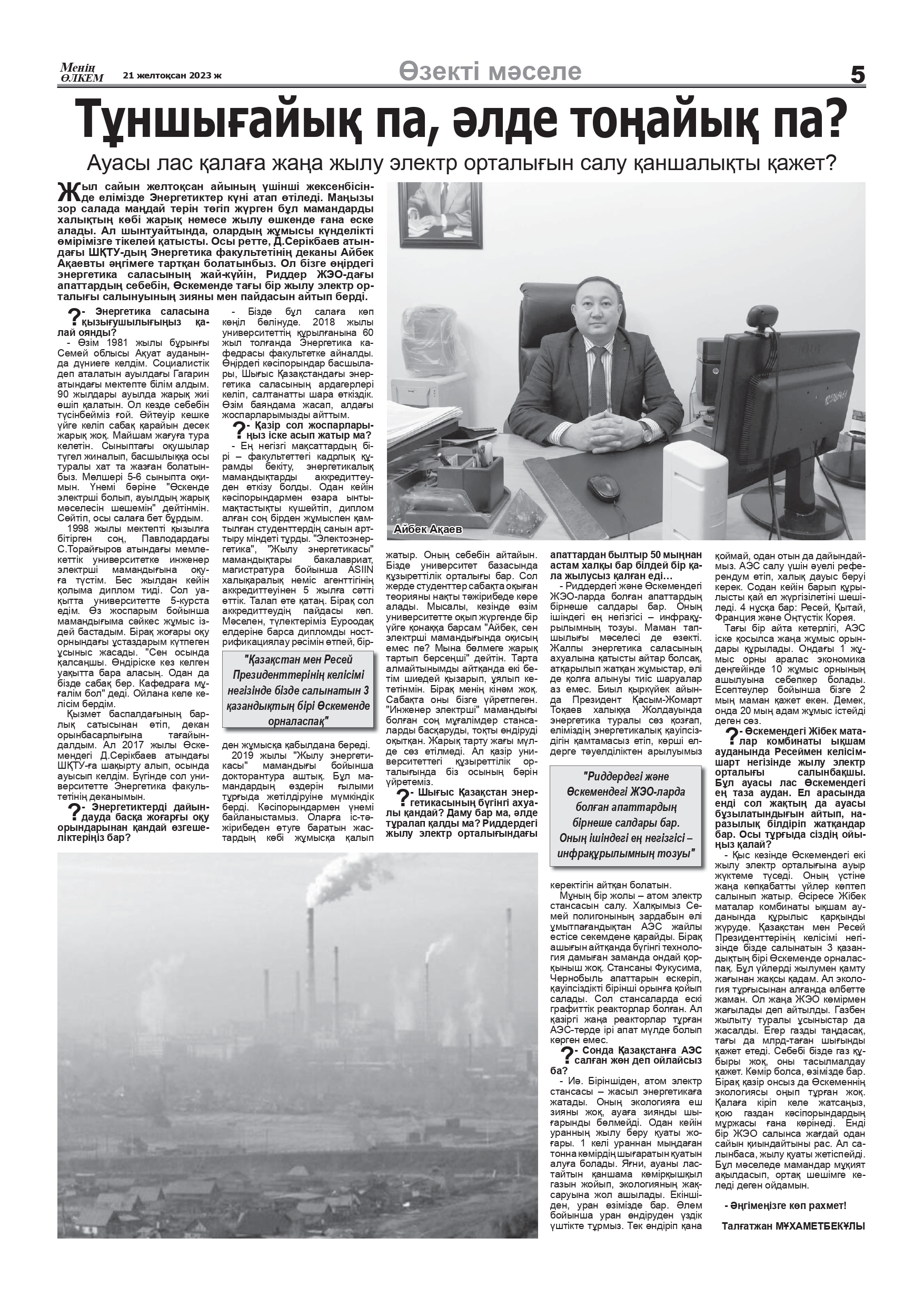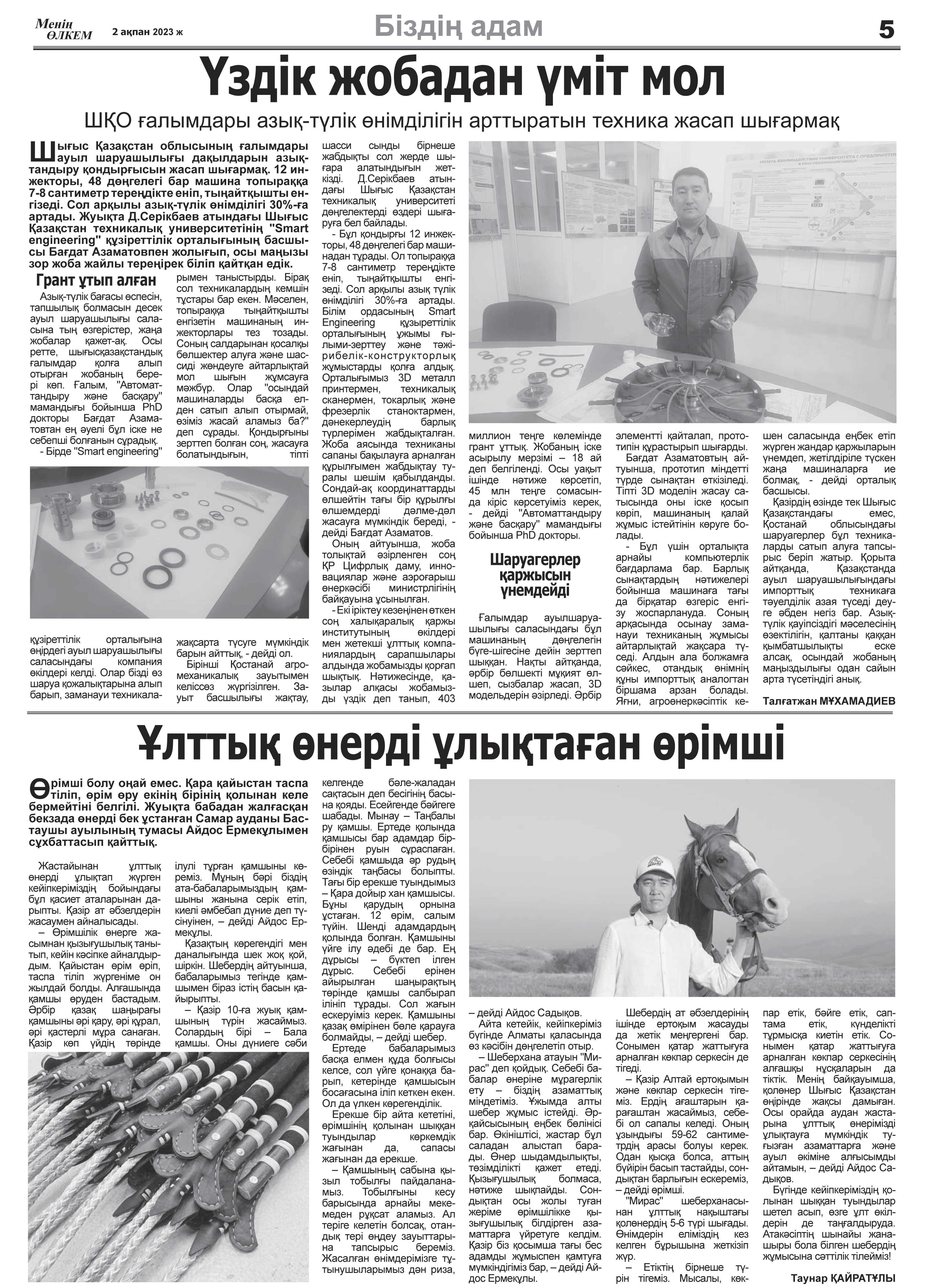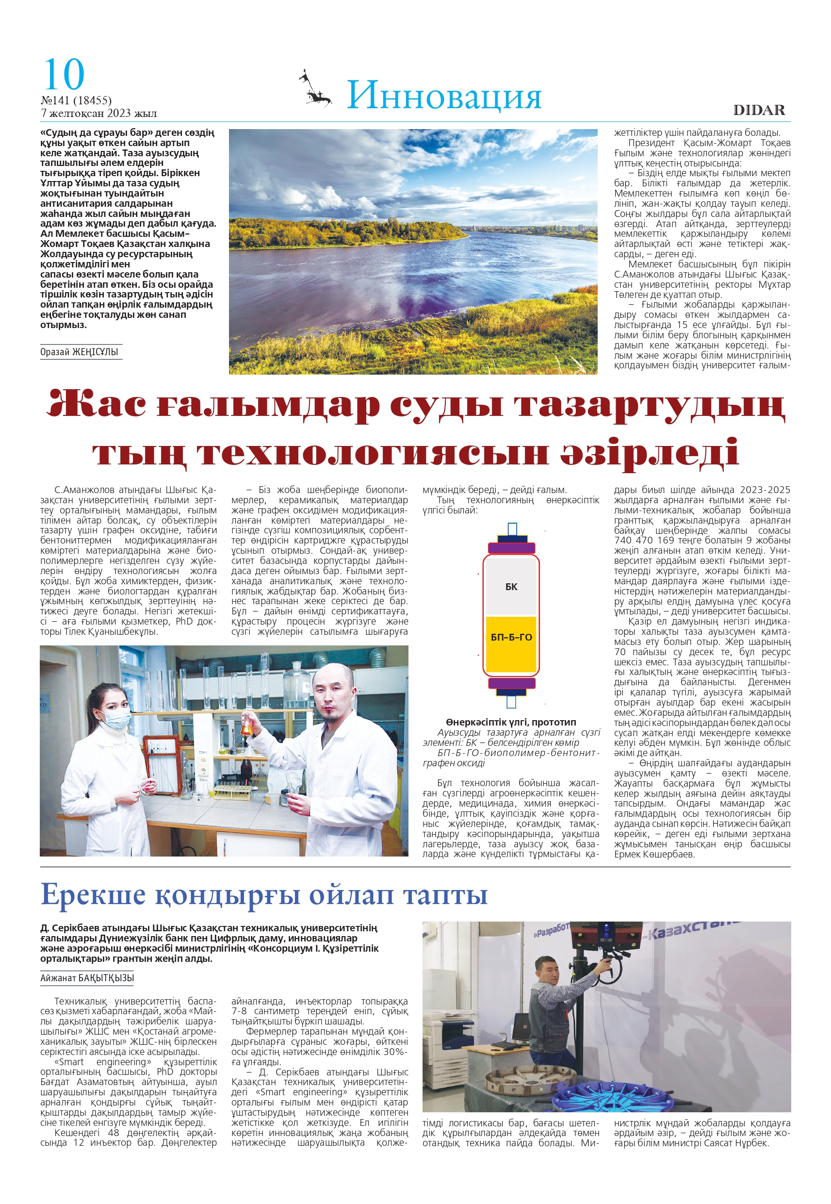 Ерекше қондырғы ойлап тапты "Дидар" газеті, № 141, 7 желтоқсан 2023 ж. |