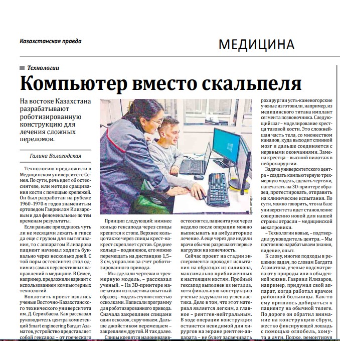 Ученые Восточного Казахстана разработали устройство, которое позволит с помощью пульта провести операции на сломанных лодыжке и голеностопе.