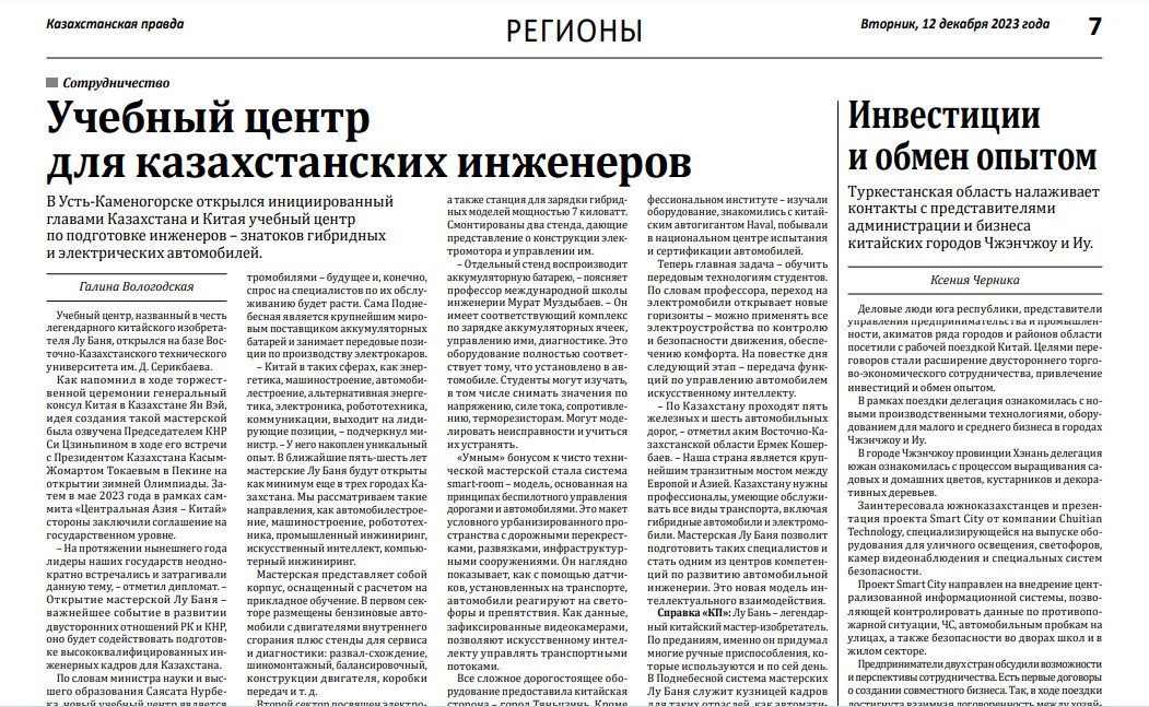 Учебный центр для казахстанских инженеров Казахстанская правда, 12 декабря 2023 г. |