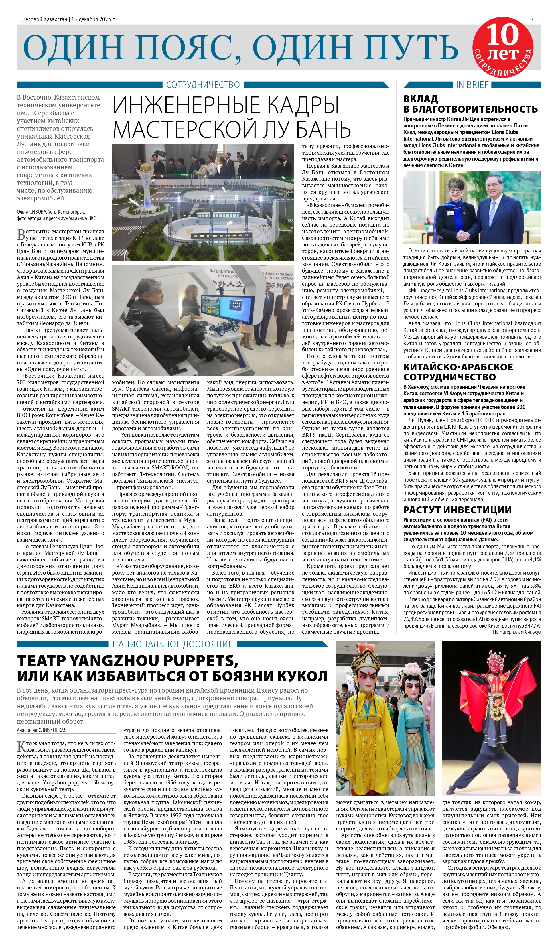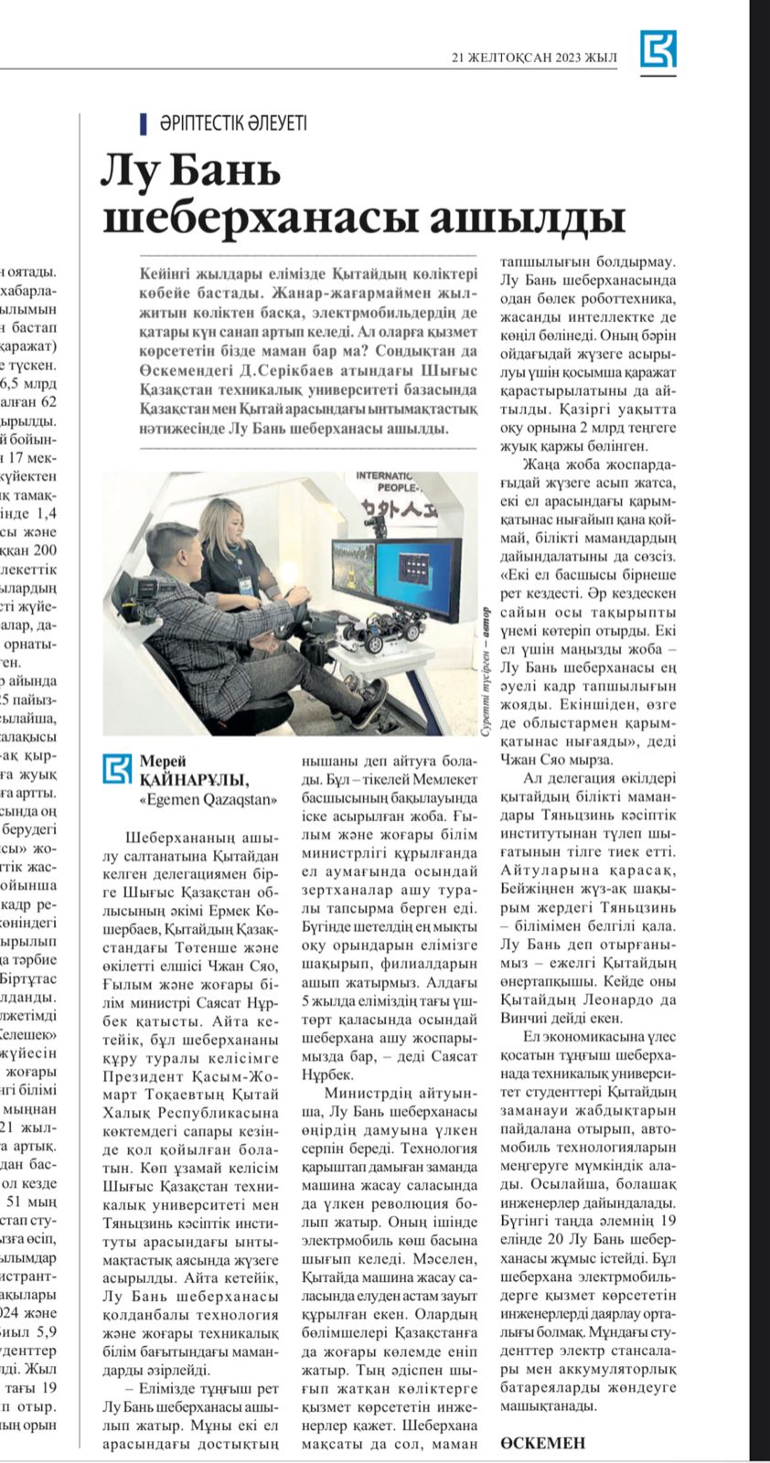 Инженерные кадры мастерской Лу Бань "Деловой Казахстан, 15 декабря 2023 г. |