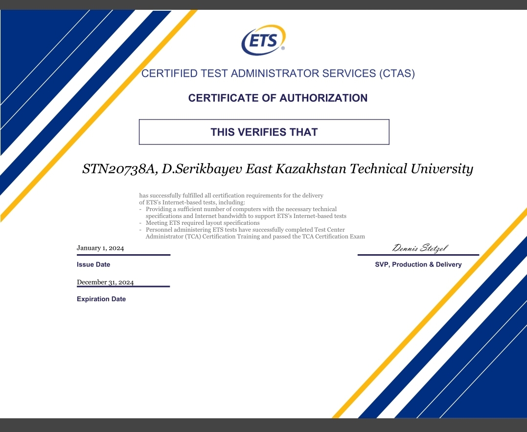 Test Center of EKTU officially organizes and administers international standardized tests such as TOEFL ITP®, & TOEFL iBT® and organizes IELTS idp.